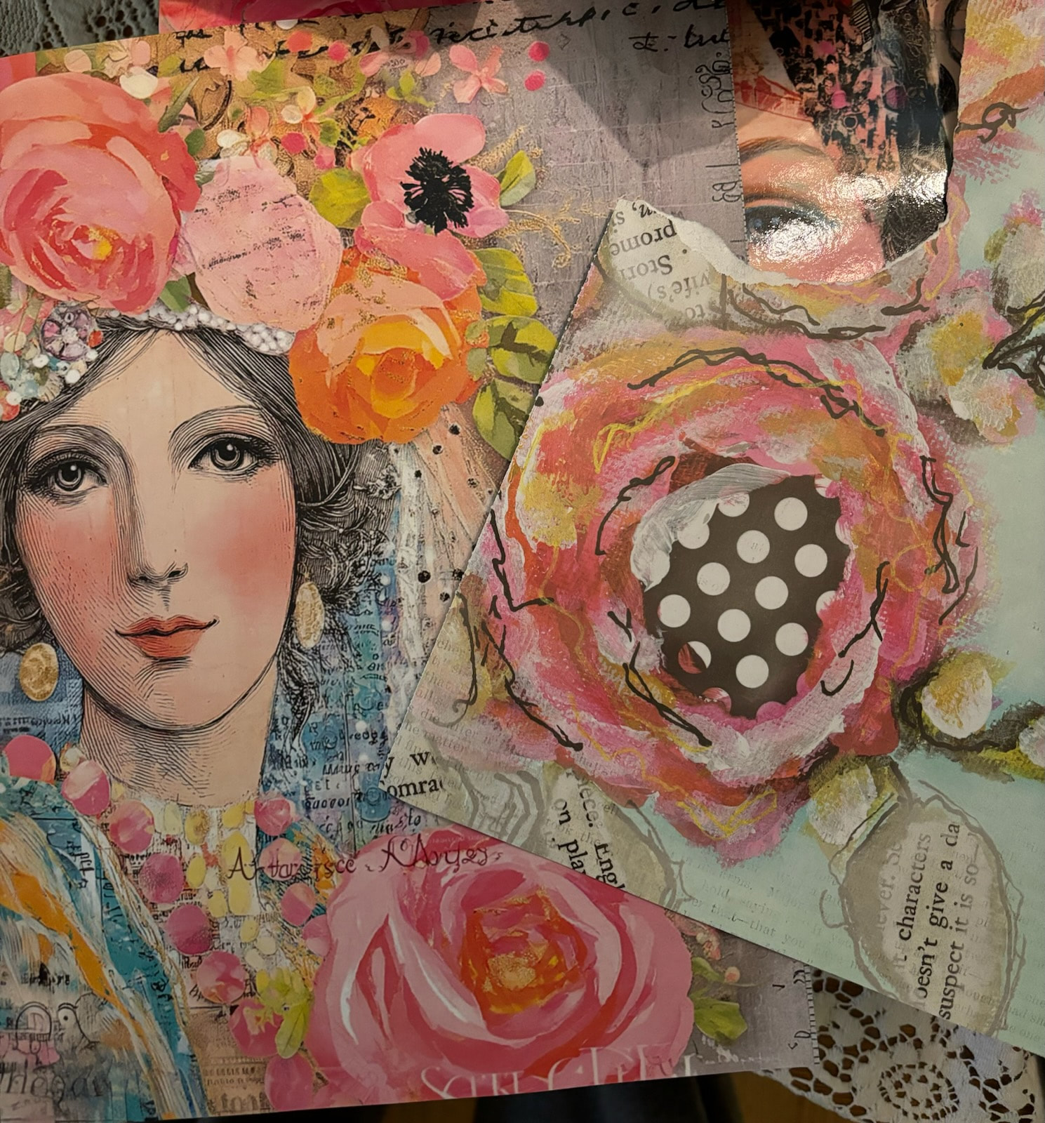 You'll explore techniques such as image transfer, glazing, stenciling, and intuitive mark-making. Learn how using different acrylic mediums can enhance textures and bring variety to your work. Bring along small found materials - bits of lace, old letters, pressed flowers, or patterned paper - to include in your collage and make your piece truly personal.