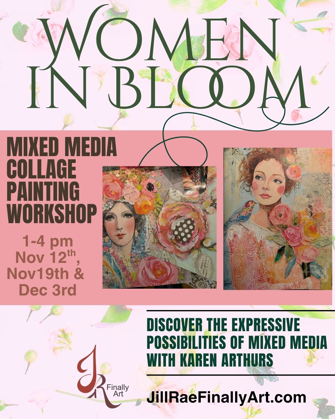 Discover the expressive possibilities of mixed media in this creative workshop for adults. Centered on the timeless connection between women and flowers, this class invites you to experiment with paint, paper, fabric, and found materials to create richly layered, expressive works of art.
